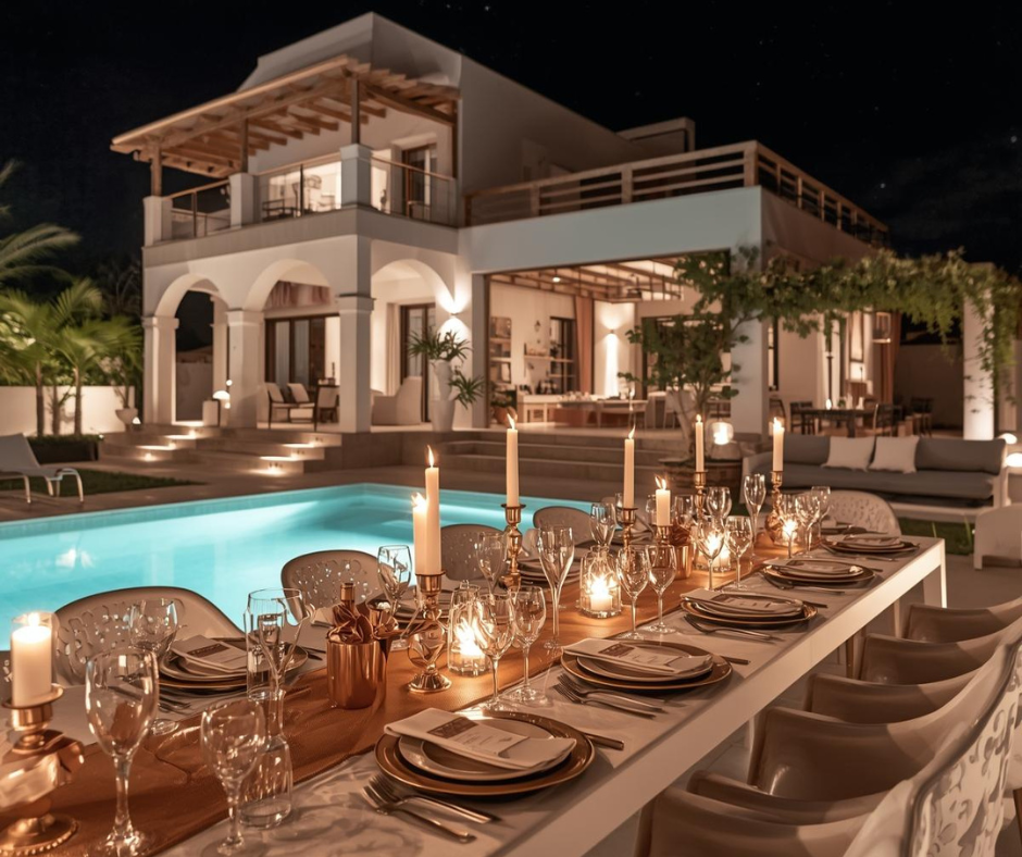 A beautifully styled dinner setup at your villa